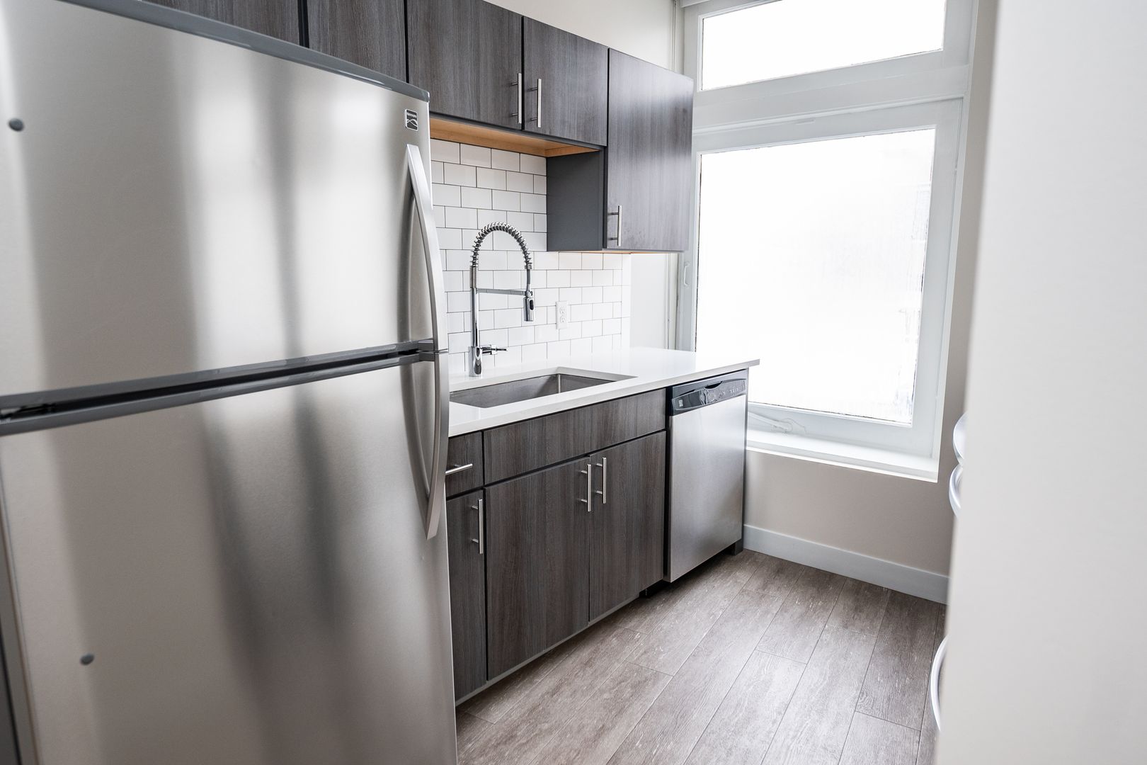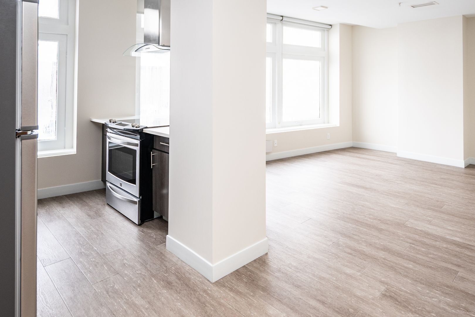 This 711 sq. ft. one-bedroom, one-bath apartment at The Terminal Building offers the perfect blend of space, style, and comfort. Enjoy a modern kitchen with stainless-steel appliances, a dishwasher, an island for extra prep and seating space, a garbage disposal, and sleek window coverings for light control and privacy. The open layout and high-end finishes create a welcoming atmosphere you’ll love coming home to.
